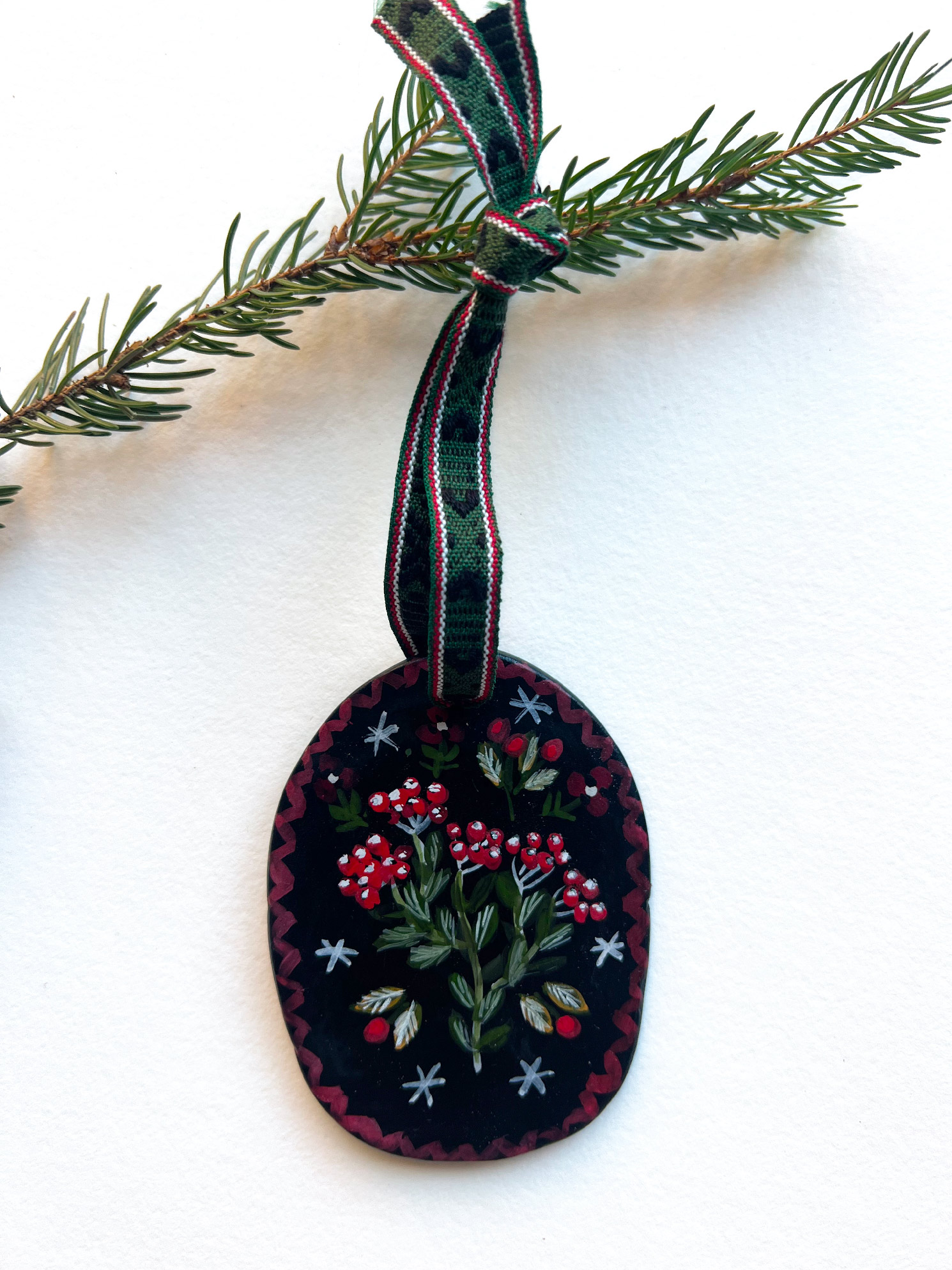 Objet doux fait-main, ruban artisanal ramené de Suède.