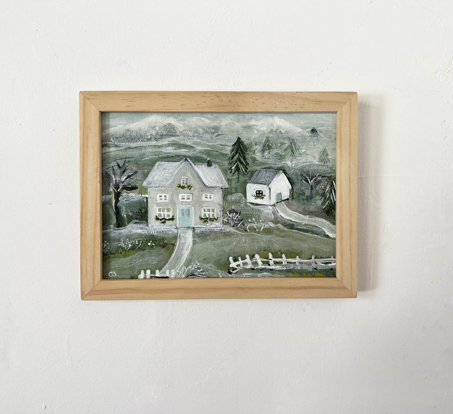 Dimensions de la peinture encadrée 13 x 18cm , encadrement en bois clair